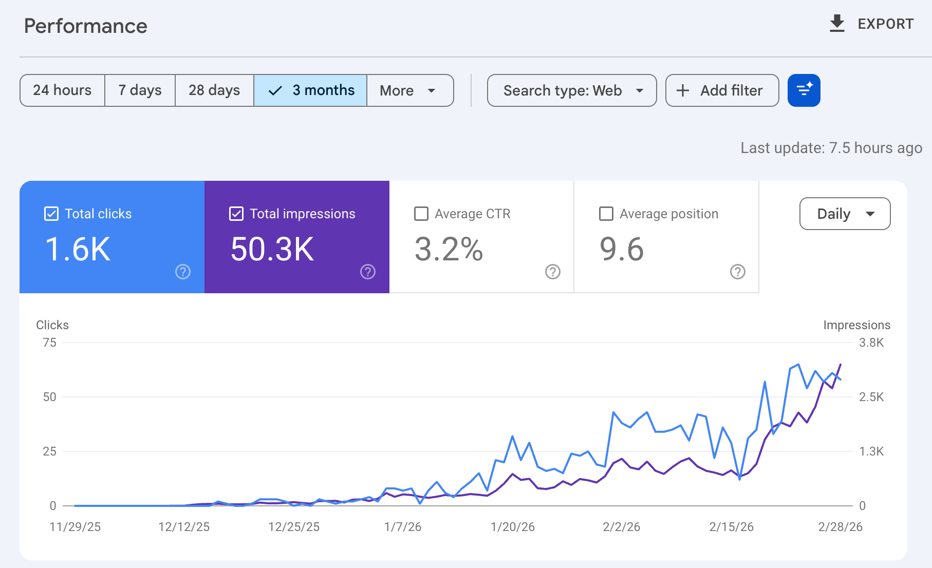 3 個月 SEO 成效:50.3K 曝光 · 1.6K 點擊 · 持續增長中